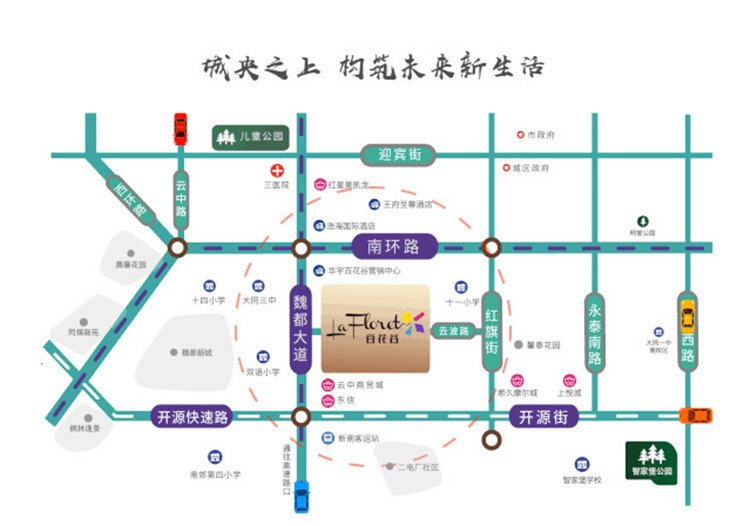 華宇大同百花谷,城央之上。約45萬(wàn)方領(lǐng)地,萬(wàn)象保羅之所 。匯聚精彩、繁華與時(shí)尚,將成為大同新坐標(biāo)。